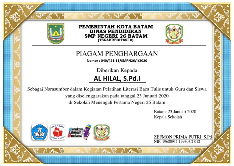 Contoh Piagam Penghargaan Untuk Narasumber Pokja Pkk from imgv2-2-f.scribdassets.com Contoh piagam penghargaan sebagai pemateri. Check spelling or type a new query. Maybe you would like to learn more about one of these? We did not find results for: